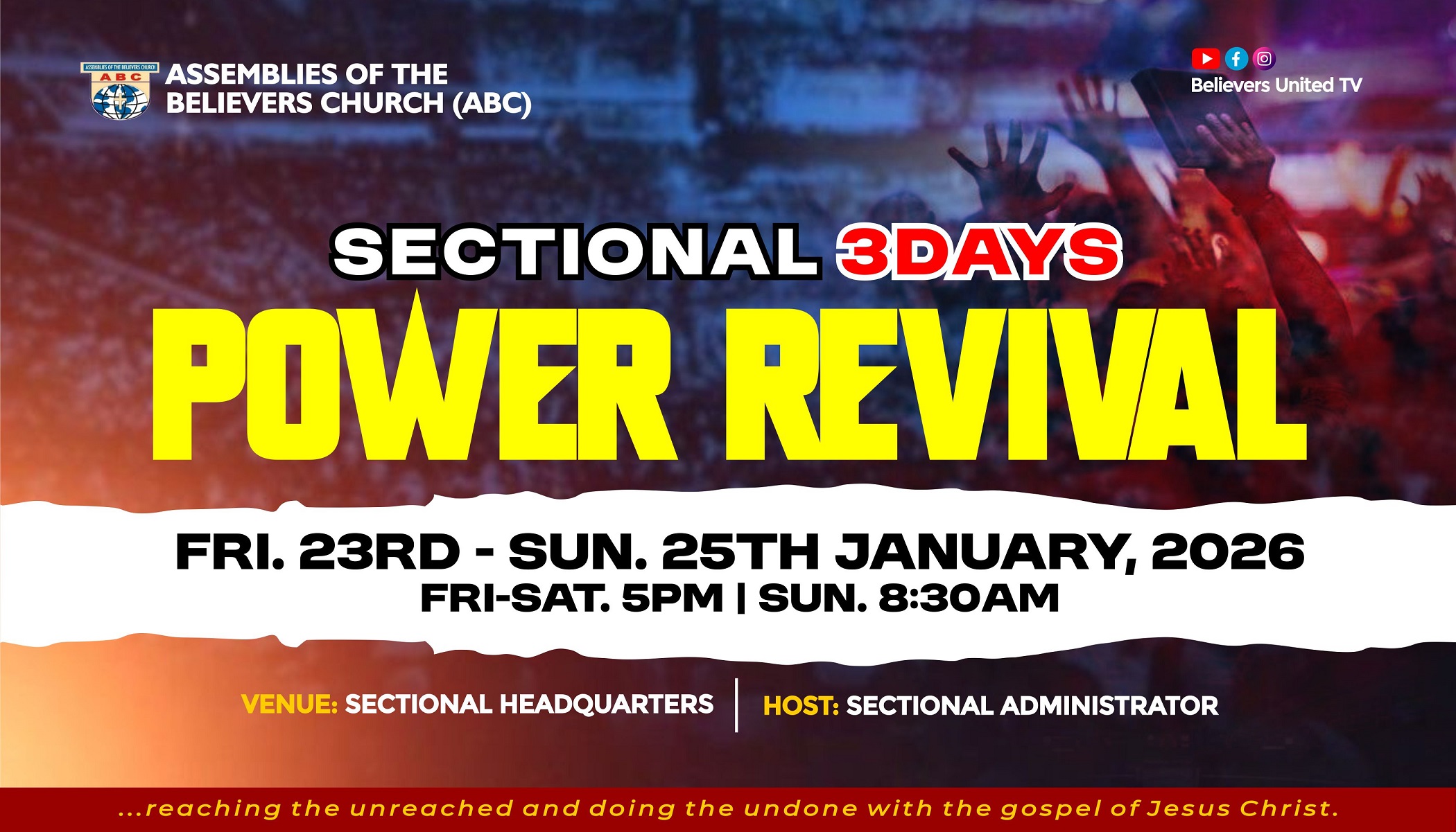 Power Revival is a revival program done in every sectional headquarter of the church on the 3rd week of January. It is a three days program (Friday – Sunday). The sectional Administrator is the director of the Power Revival with his sectional council, and every ministers and members within the section is to support and attend the event.